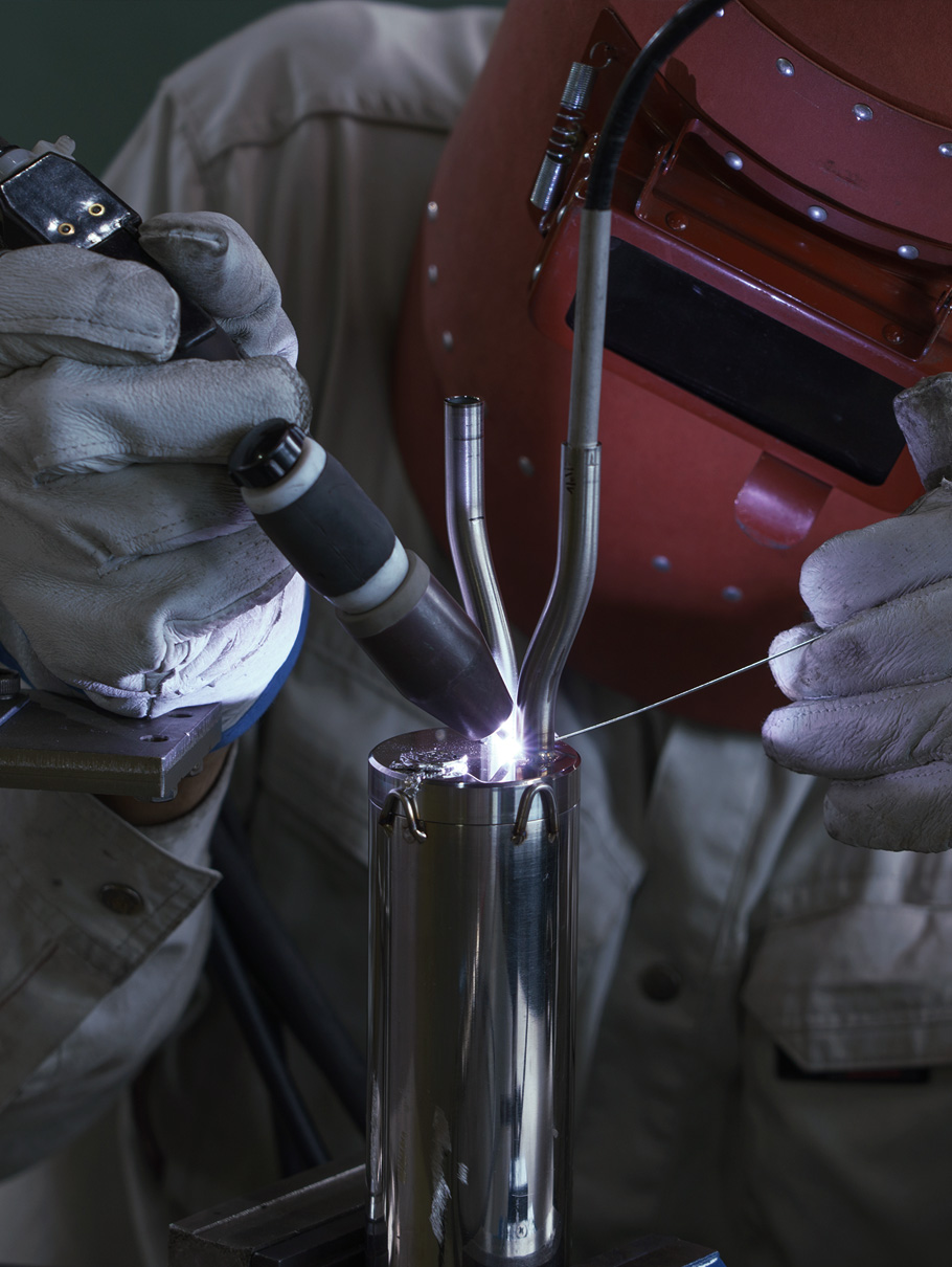 ステンレスのTIG溶接を開始して25年。燕の⾼度な技術を継承してきました。その間、様々な独⾃の技術を開発してきました。中でも、TIG溶接時の熱による酸化防⽌の独⾃技術を開発。2013年に特許を取得しました。他に⾒ない、丈夫で美しい溶接を実現しています。
