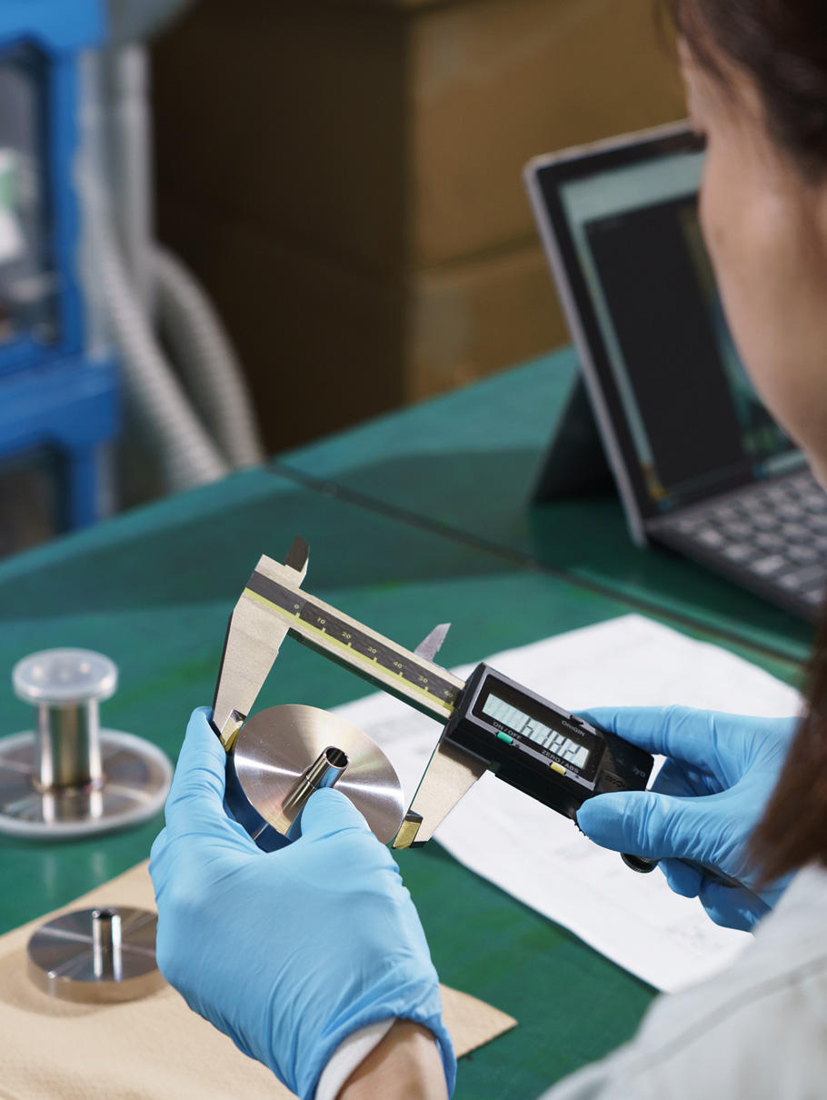 ご依頼により製品をヘリウム・ディテクターによるリーク試験、3D測定機による検査、水圧検査などをして出荷いたします。