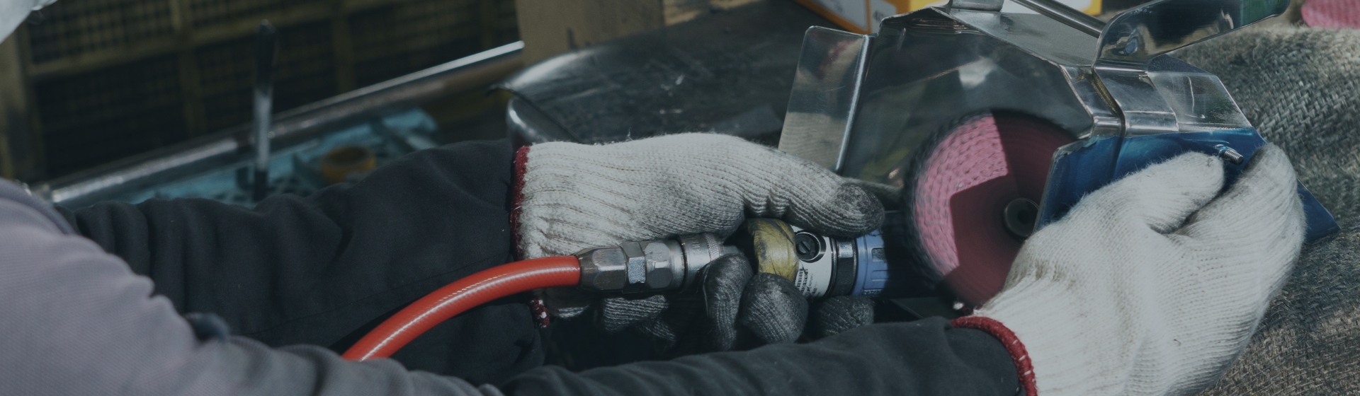 バフ研磨は重労働です。何十キロもある重い部品を一日中持ち続けなくてはならない日もあります。強力なモーターに体を押し付けるため危険をともないます。研磨された金属が体につき体中真っ黒になります。体が黒くなればなるほど製品は鏡のように輝きます。